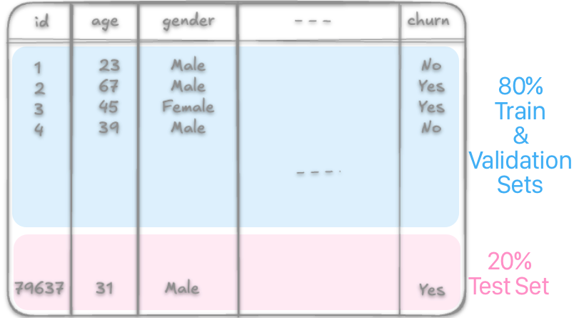 | Validation Data | Tune model, prevent overfitting, select hyperparams | During training | 10-20 |